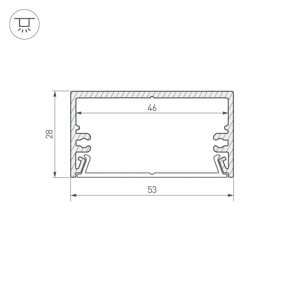 Алюминиевый профиль для светодиодных лент и линеек. Используется с микропризматическим прозрачным экраном или алюминиевым верхом. Габаритные размеры (L×W×H): 2000x53x28 мм. Ширина площадки для ленты 46 мм. Экраны, заглушки и другие аксессуары приобретаются отдельно. Цена за 1 метр.