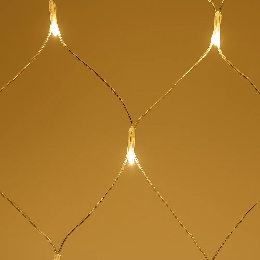 Светодиодная сеть Home. 1500x1500 (длина 1500 мм, высота 1500 мм). Цвет свечения ТЕПЛЫЙ БЕЛЫЙ (3000 К). 150 светодиодов размером 5 мм со статическим и 8 динамическими эффектами свечения с резким световым рисунком (прозрачная вогнутая линза). Провод прозрачный, ПВХ. Питание 230 В, Мощность 12 Вт, защита IP20, применение в помещении. Аксессуары для подключения и выбора режима свечения в комплекте.