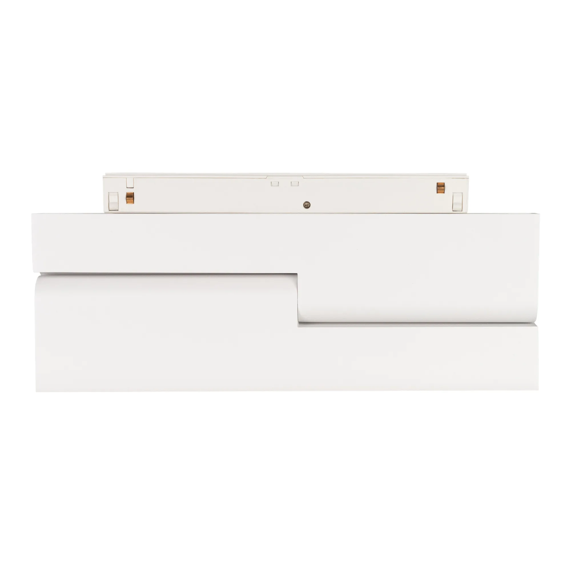 Светильник для магнитных треков MAG-ORIENT шириной 26 мм с управлением DALI. Мощность 12 Вт, св. поток 750 лм, 60 лм/Вт, теплый 3000 K, CRI>90, угол 80°, напряжение питания 48 В. Белый прямоугольный корпус из металл, экран поликарбонат, степень защиты IP20. Размер: длина 232 мм, ширина 23 мм, высота 99 мм. Монтаж на трек MAG-ORIENT. Пульсация <1%.