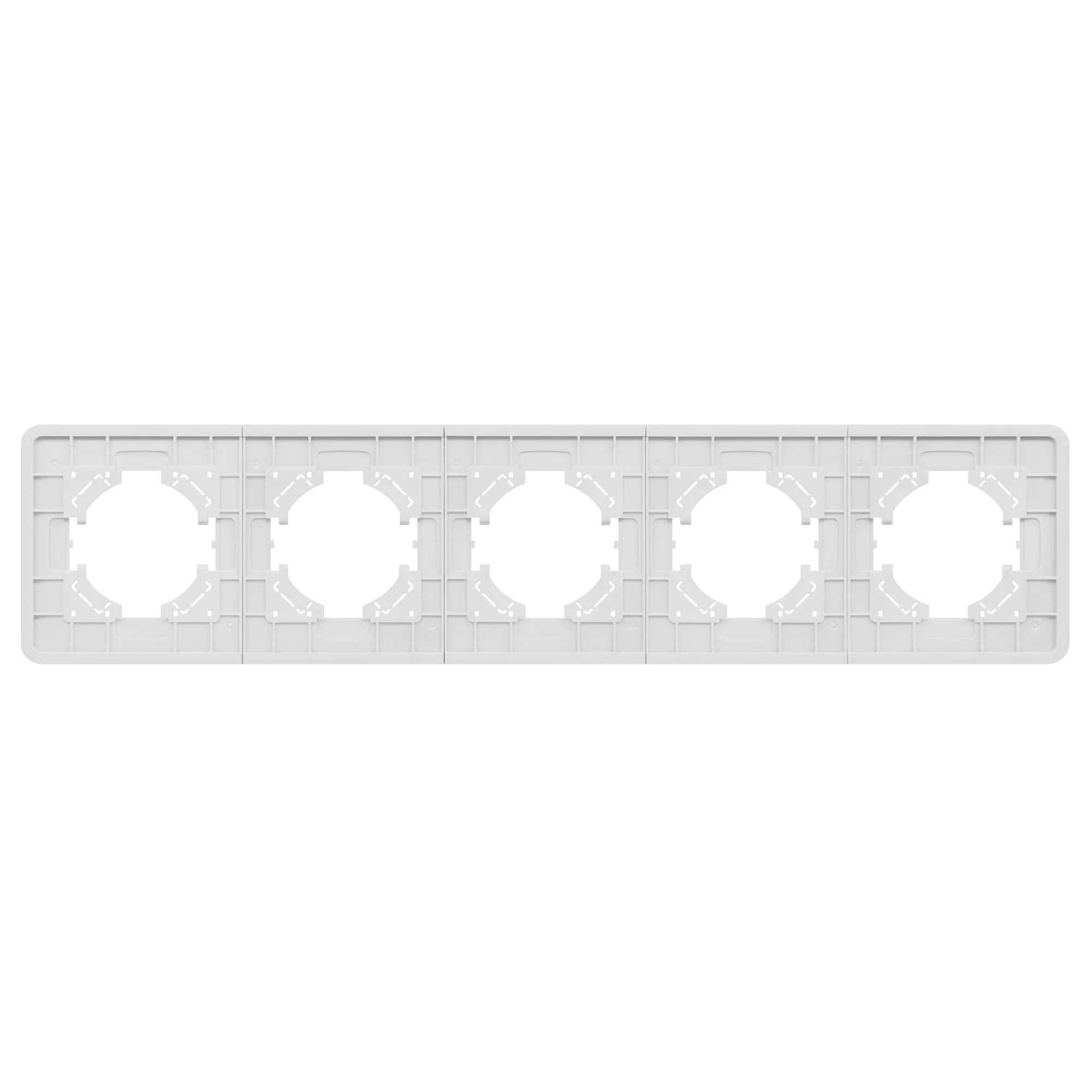 Рамка стеклянная на 5 постов, под встраиваемый механизм. Цвет - белый. Уровень герметичности IP20. Ориентация монтажа - горизонтальная (основным ориентиром служат посадочные выступы для накладки механизма).