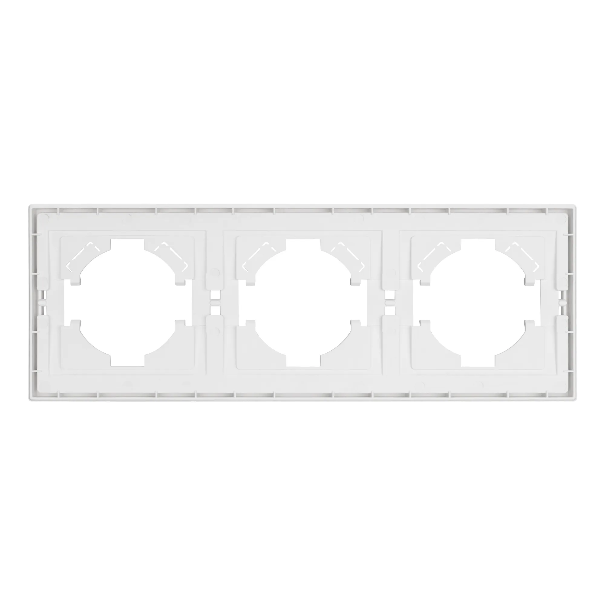Рамка пластиковая на 3 поста, под встраиваемый механизм. Цвет - белый. Уровень герметичности IP20. Ориентация монтажа горизонтальная.